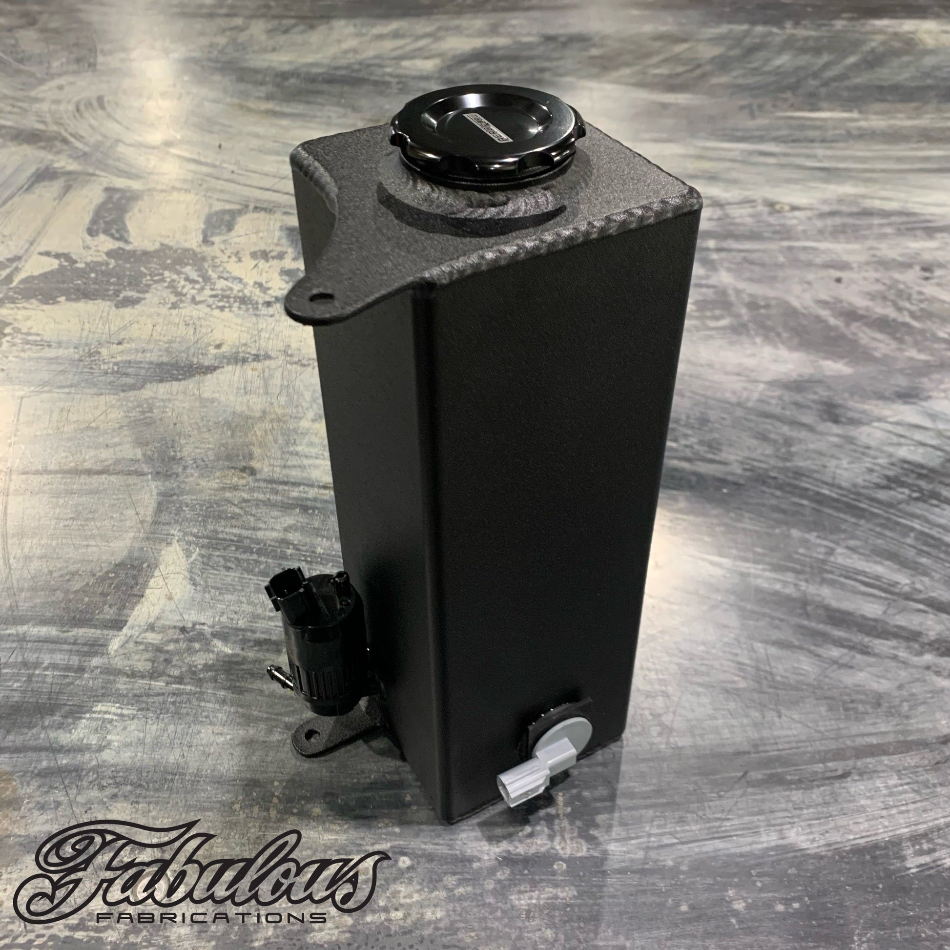 Each washer bottle holds 2.7L, comes powdercoated Dulux Mannex Black and utilises factory mounting points, factory fluid pump and low level sensor and factory wiring loom.
